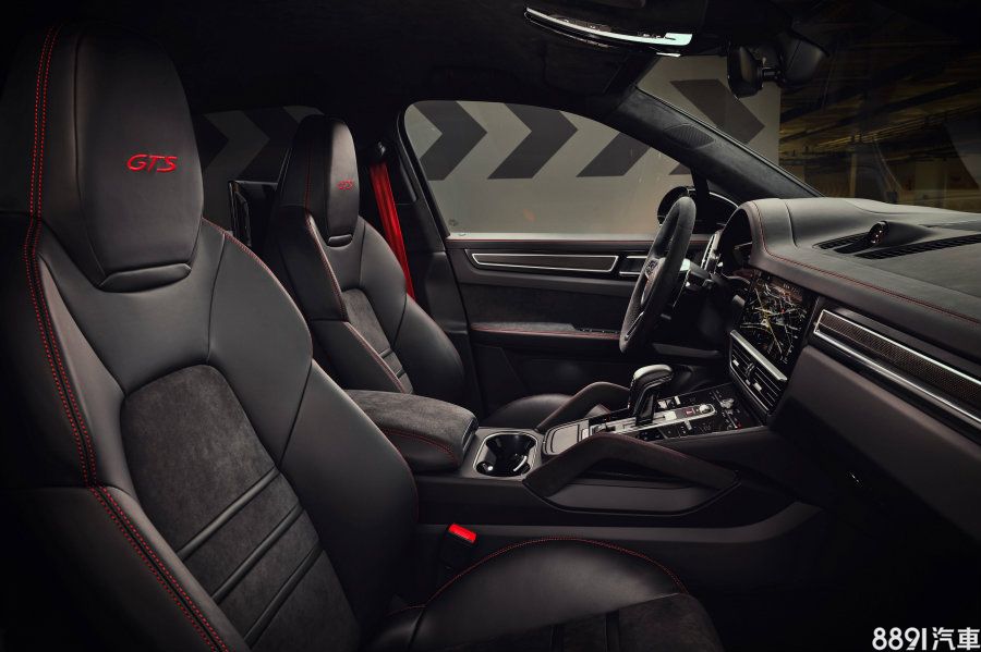 大量麂皮鋪陳的內裝搭配紅色縫線一直以來都是GTS車型的特色,隨處都可見到GTS標誌的點綴,雙前座則是標配八向電動調整跑車座椅,另還有多種GTS專屬配色可選擇。