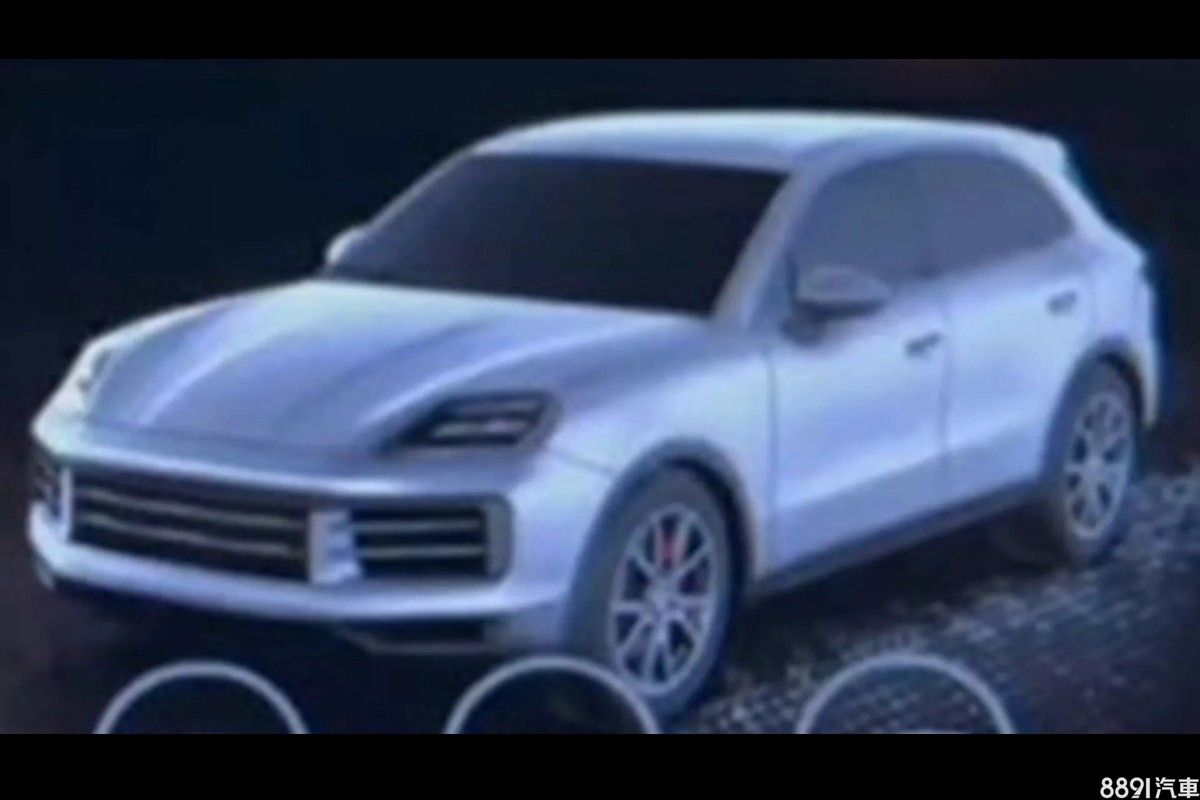 仔細看會發現,這照片疑似是翻拍原廠多媒體系統中的車輛圖示,是經過電腦運算出來的概念圖,與實車還是會有些微落差,不過相與貼滿偽裝的測試車相比,新車輪廓已算清晰、細節也有了大概。從車頭望去,小改款Cayenne採用水平設計的氣壩設計,重點在頭燈換上類似Taycan的四眼式設計。