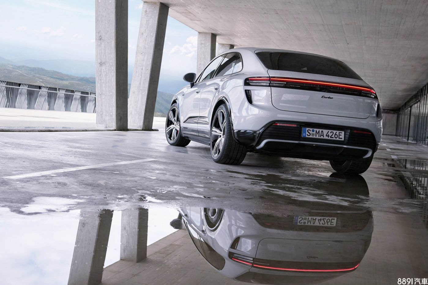 新Macan導入橫貫式尾燈,尾燈組由數段水平光條組成,並搭配時下流行的立體燈殼,尾燈上方鈑件實為自動升降尾翼,下方則為車型銘牌所在,而新尾燈結合略帶Coupe風的流線尾背,成為大改款的辨識特徵。