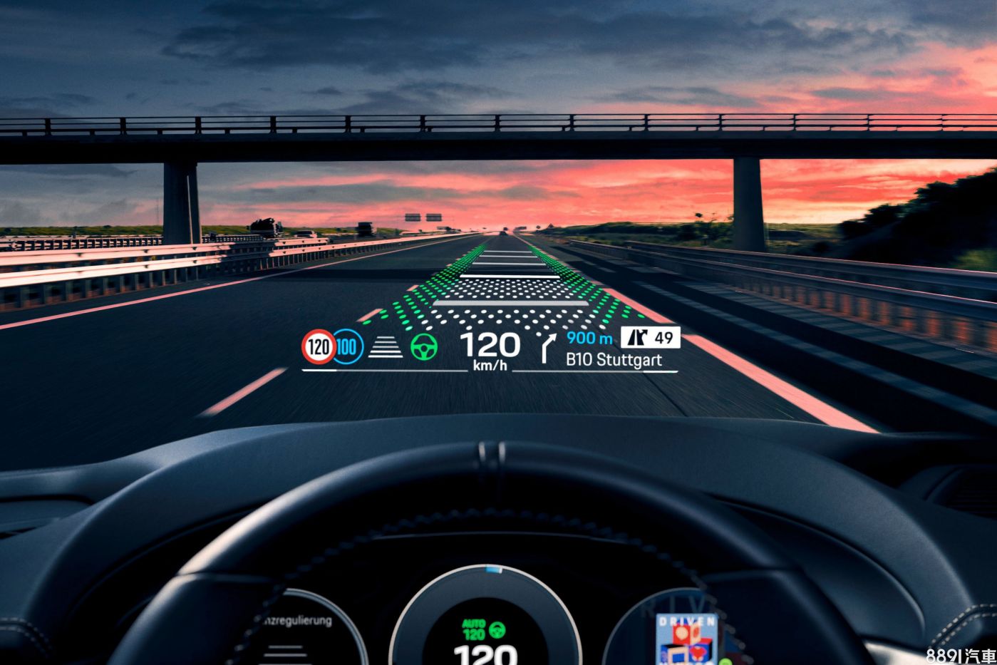 除了螢幕外,駕駛座前方也加入新款HUD抬頭顯示器,特色在於能支援顯示AR擴增實境導航資訊,且擁有更大的投影範圍,原廠宣稱能達到相當於87吋螢幕的顯示效果。