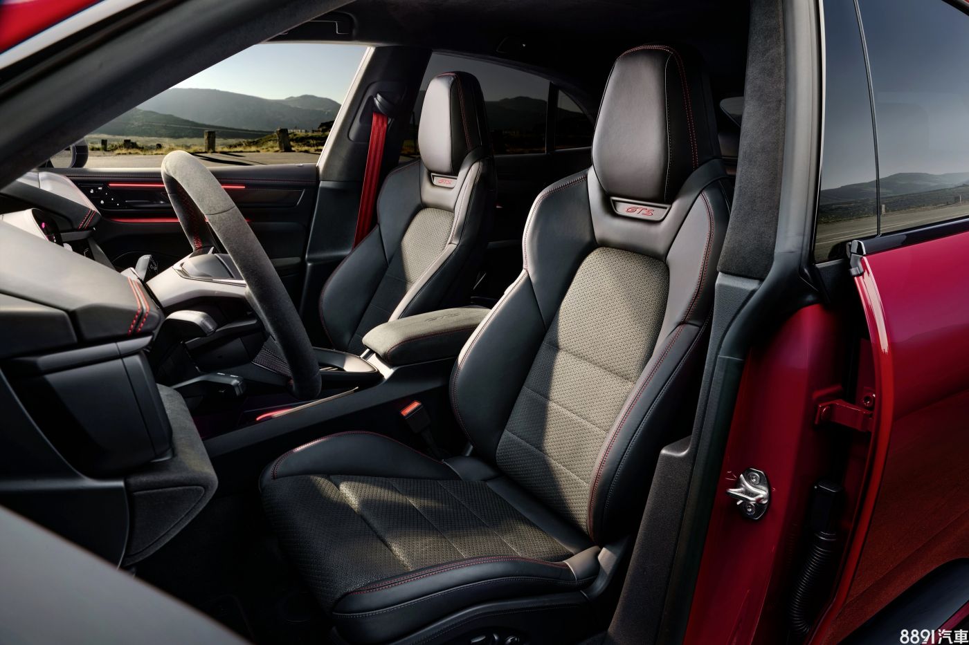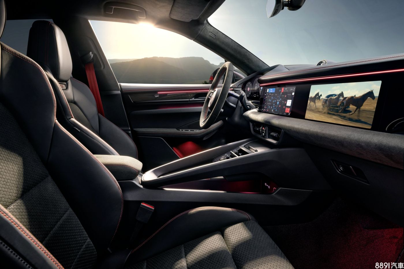 Macan GTS座艙同樣延續運動化風格,採用大量Race-Tex材質搭配黑色柔感真皮飾件。Race-Tex材質應用於含電熱裝置的GT跑車式多功能方向盤、中央扶手與車門扶手,以及中控台上方,並延伸至十八向電動調整跑車座椅的中央區域,座椅側翼與頭枕則以柔感真皮包覆。