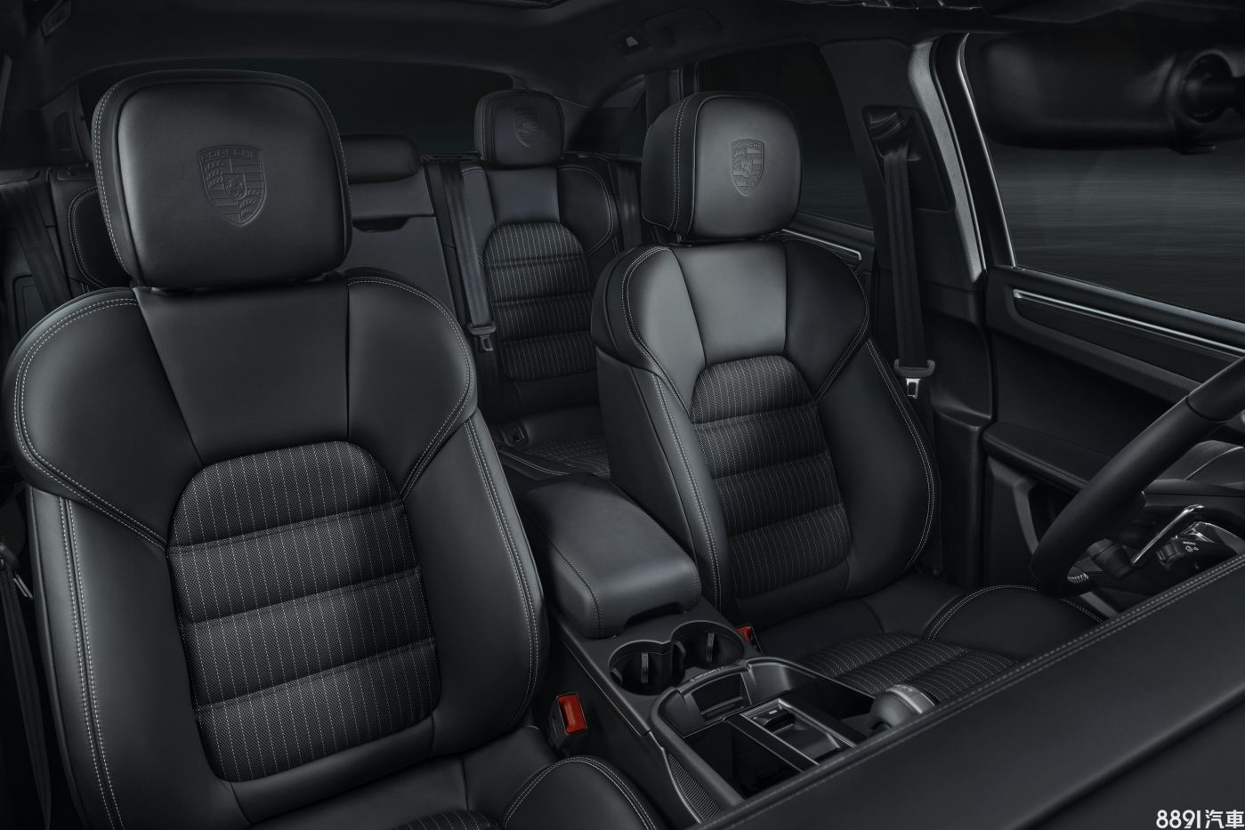 Macan T標準配備雙前座8向電動調整跑車座椅、座椅電熱系統,以專屬黑色真皮包覆,前座椅中央椅面部分與後座椅外側部分採用Sport-Tex材質,並在前座座椅頭枕上施以保時捷盾型徽飾。對比色的妝點從外觀延伸至內裝,包含座椅、頭枕與方向盤皆以銀色車縫線作為點綴。
