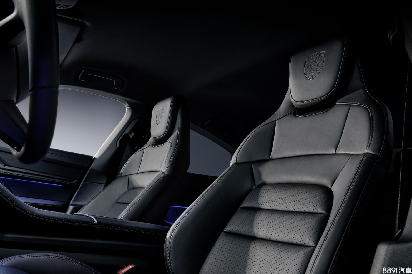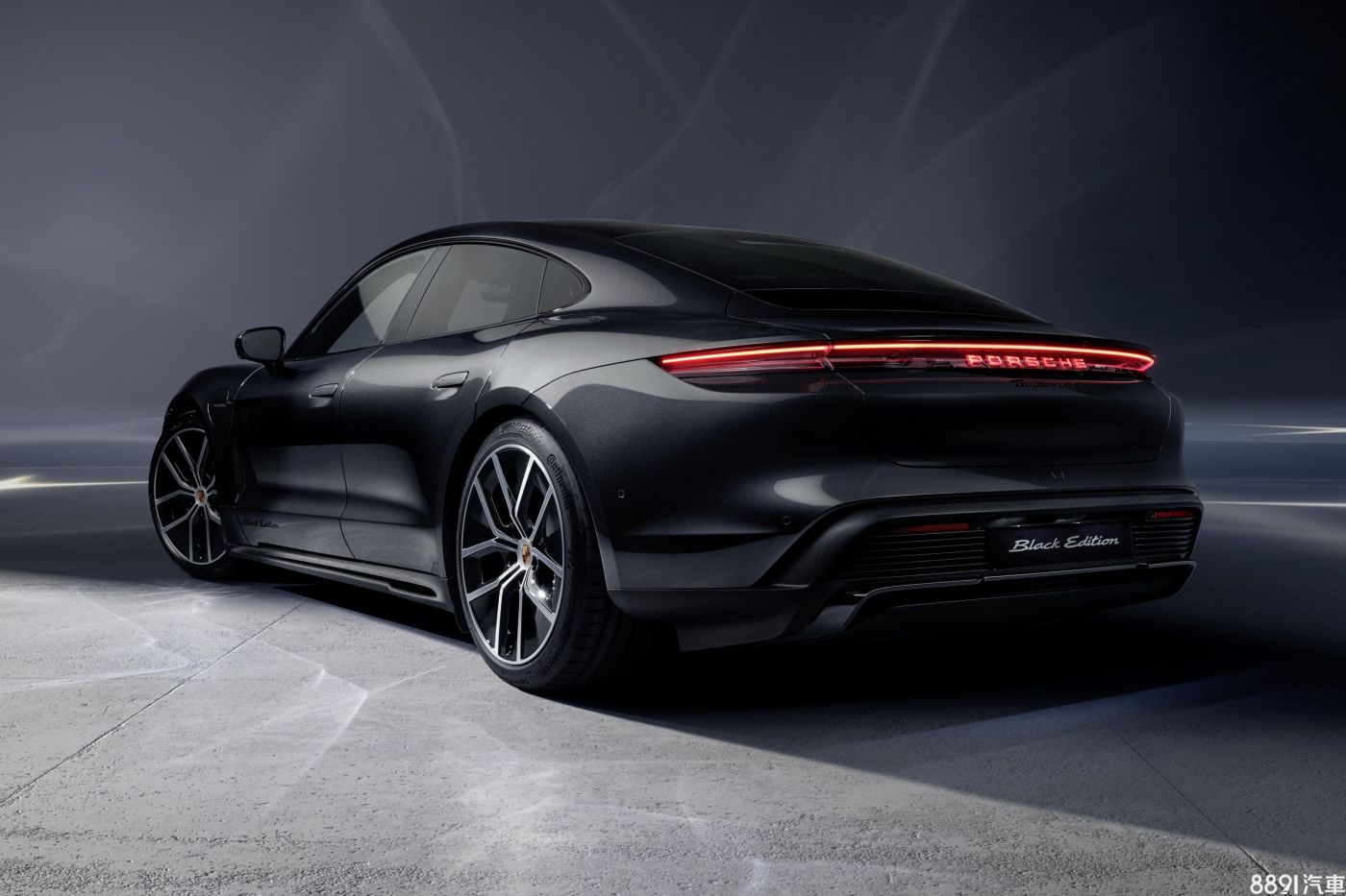 Taycan Black Edition全車包含SportDesign外觀套件、車外後視鏡蓋、側窗飾條、車尾車型名稱均採用高亮澤黑色處理,車尾搭配自發光PORSCHE黑色字樣,兼具運動感與優雅氣質。