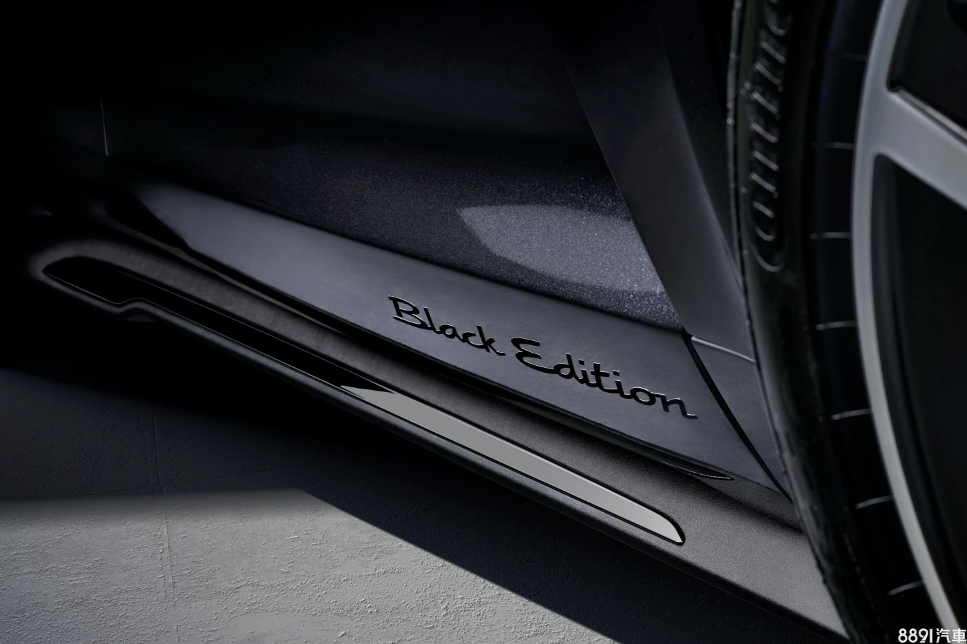 車內則是採用黑色Accent特色套件與黑色柔感真皮內裝,中央扶手特別施以專屬Black Edition印記,搭配自發光黑色髮絲紋鋁合金車門檻。同時特仕車也增列不少標準配備,包含變換車道輔助、主動停車輔助含環景輔助攝影、鋁圈中心蓋鑲嵌全彩Porsche盾型徽飾、高解析度LED矩陣式頭燈、PORSCHE字樣LED車門投影燈、含記憶套件的雙前座十四向電調座椅、頭枕施以Porsche盾型徽飾、BOSE環繞音響等等。