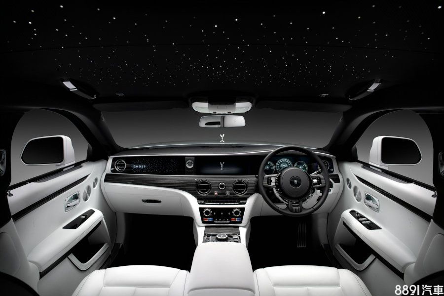 內裝部分一向是勞斯萊斯的強項,新一代Ghost車內採用20組不同材質的皮革,搭配新設計的木紋飾板,營造出卓越不凡的品味。此外,Bespoke客製化部門特別推出由152顆LED燈組成的星辰儀錶板,可與星空頂篷閃爍相呼應。