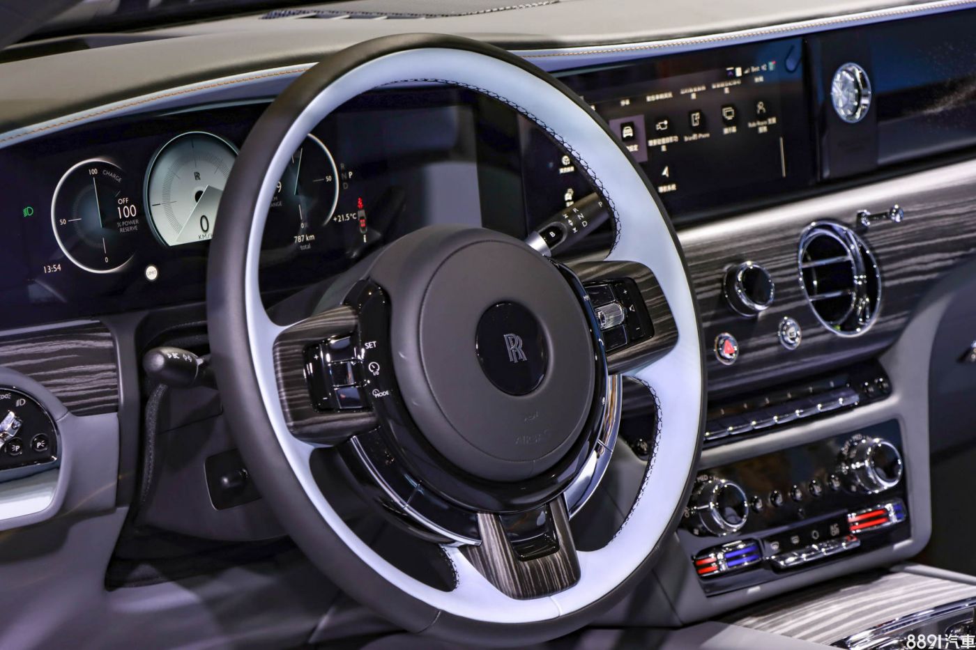 內裝設計與新世代Rolls-Royce差異不大,車室採用大量水平線條及圓形出風口,搭配真皮、金屬材質、鋼琴烤漆、木紋飾板等複合材質,來堆疊出奢華感,並同樣提供高度客製化的選項。而現場展示車,內裝主要有選配雙色真皮方向盤、儀錶/座椅亮橘色飾條、Canadel木紋門飾板等等,看起來古典簡約。
