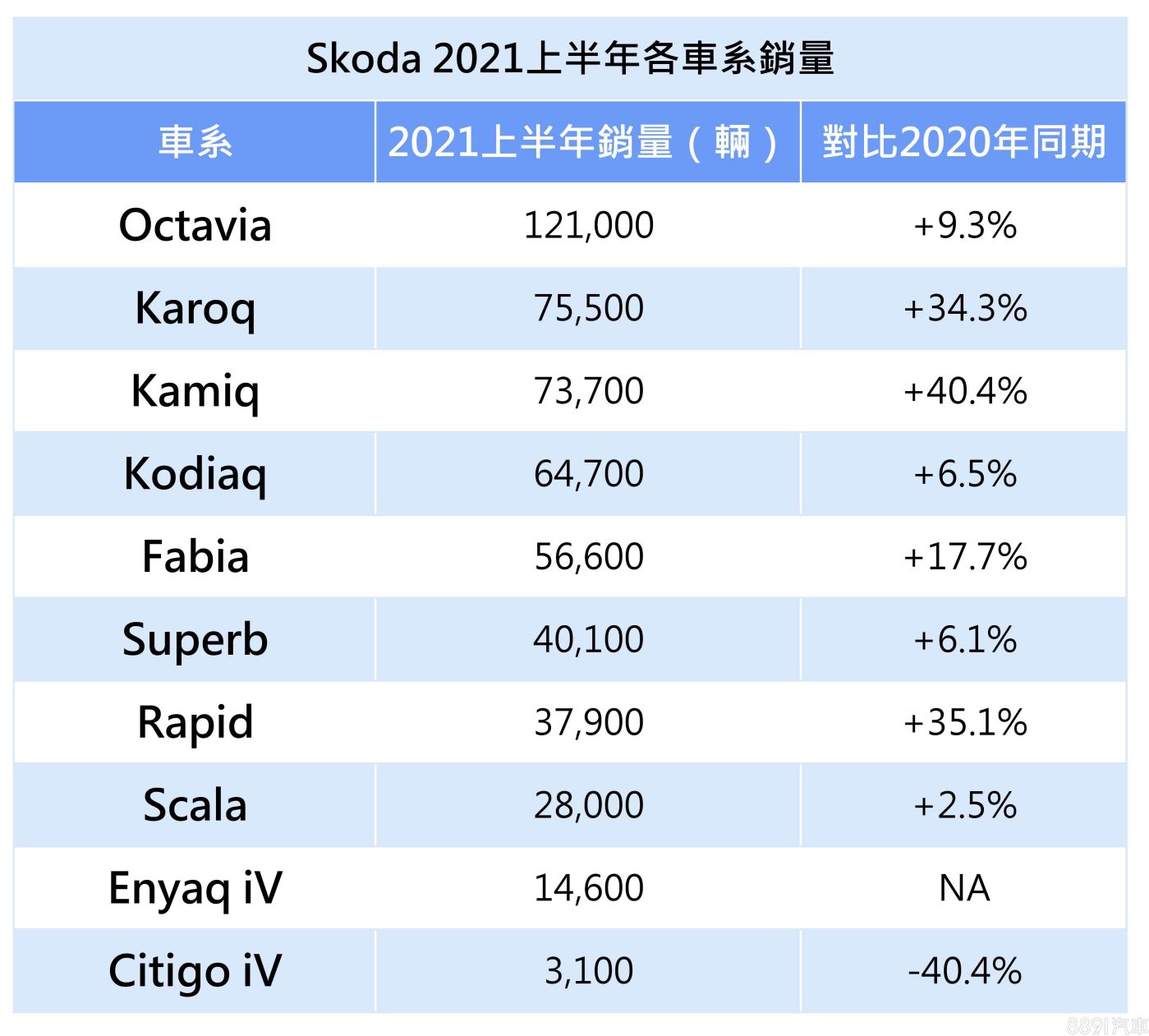 儘管全球壟罩在疫情的陰霾下,車用晶片短缺也持續帶來挑戰,但Skoda今年上半年仍有不錯表現,交車數來到51.53萬輛,較去年同期成長20.8%,營業利潤9.74億歐元,對比去年疫情高峰期成長了327.2%。