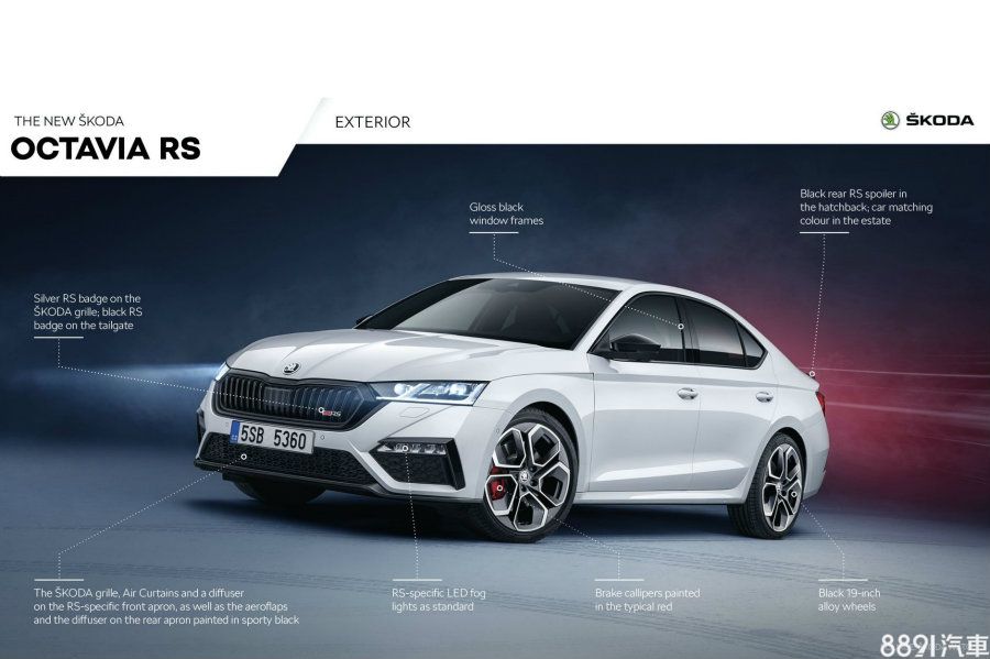 外觀沿襲傳統,於車身多處採用亮黑塗裝,並擁有更具侵略性的前保桿、更犀利的前下擾流、亮黑水箱護罩、黑色窗框,當然足證其身分的RS徽飾更是不可或缺,車尾同樣在後保桿「做文章」,加上擾流尾翼,妝點出符合性能身分的面容,LED矩陣式頭燈亦為標配項目。