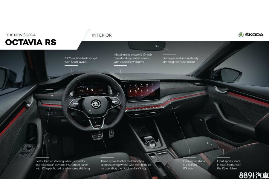 運動化座椅也少不了,帶有RS徽飾的賽車化座椅加諸紅、銀、灰色車縫線,視覺呈現上「更有感覺」。
