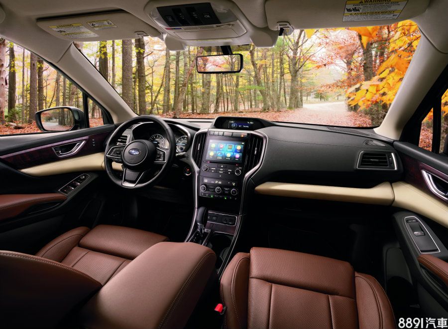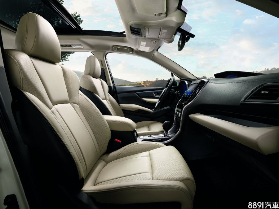 車室沿襲家族化設計,加入不同色系的皮革點綴出鮮明的視覺效果,配置三輻式多功能方向盤、雙環式儀錶附多中央顯示幕、多功能顯示器、8吋多媒體系統、三區恆溫等配備,安全輔助項目部分,則全車系標配EyeSight。