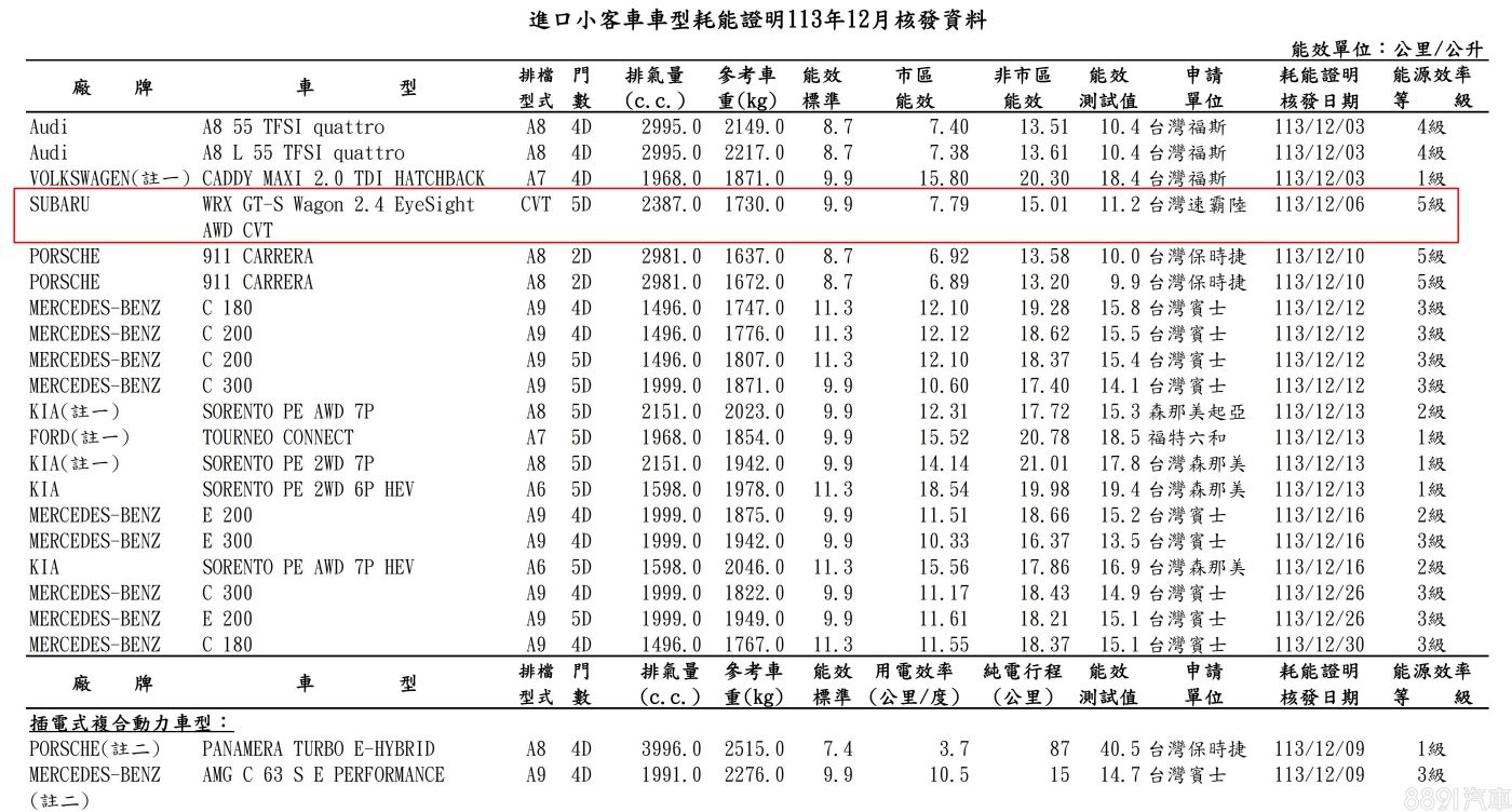 事實上,去年12月能源署的核發資料,速霸陸就曾送測「WRX GT-S Wagon 2.4 EyeSight」的新車型,而GT-S定位比國內販售的tS版本還要入門,推測就是8891捕獲的這款,預料會在新年式追加導入,將車系入手門檻下修,冀望能提升銷量。