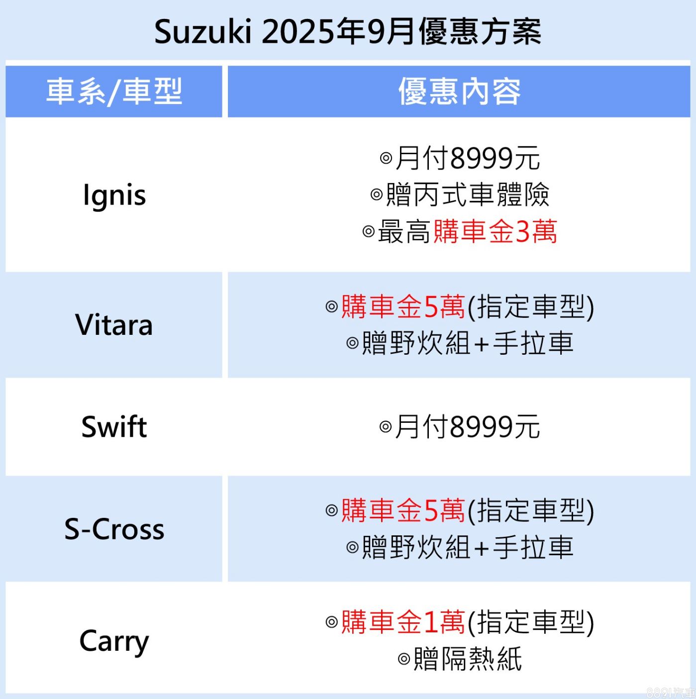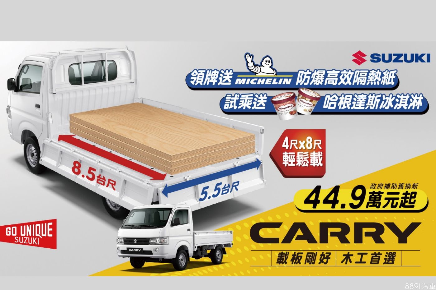 Vitara和S-Cross,入主指定車型則同樣提供購車金5萬,再贈野炊組+手拉車;至於頭家最愛的Carry,凡於活動期間完成領牌,即贈送「米其林防爆高效隔熱紙」,指定車型再加碼贈送1萬元購車金。