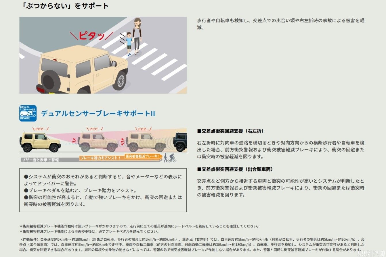 新年式Jimny升級DSBS II雙感知煞車輔助系統,除了避免車輛碰撞風險自動介入煞車外,現在也加入偵測行人與自行車騎士。