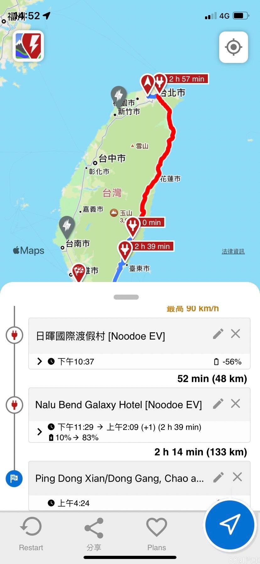 有了這個App,就不用特地在社團或群組發問「我想開到XX地這樣電量夠嗎?」,而且區分品牌與車型,能更精準地做出用電量預測,不過由於是全球性的App,台灣的圖資稱不上非常完整,甚至有時會出現規畫不出路線的狀況,但搭配前述推薦的充電站查詢App,對於開著純電車進行長途旅遊來說,確實十分好用!