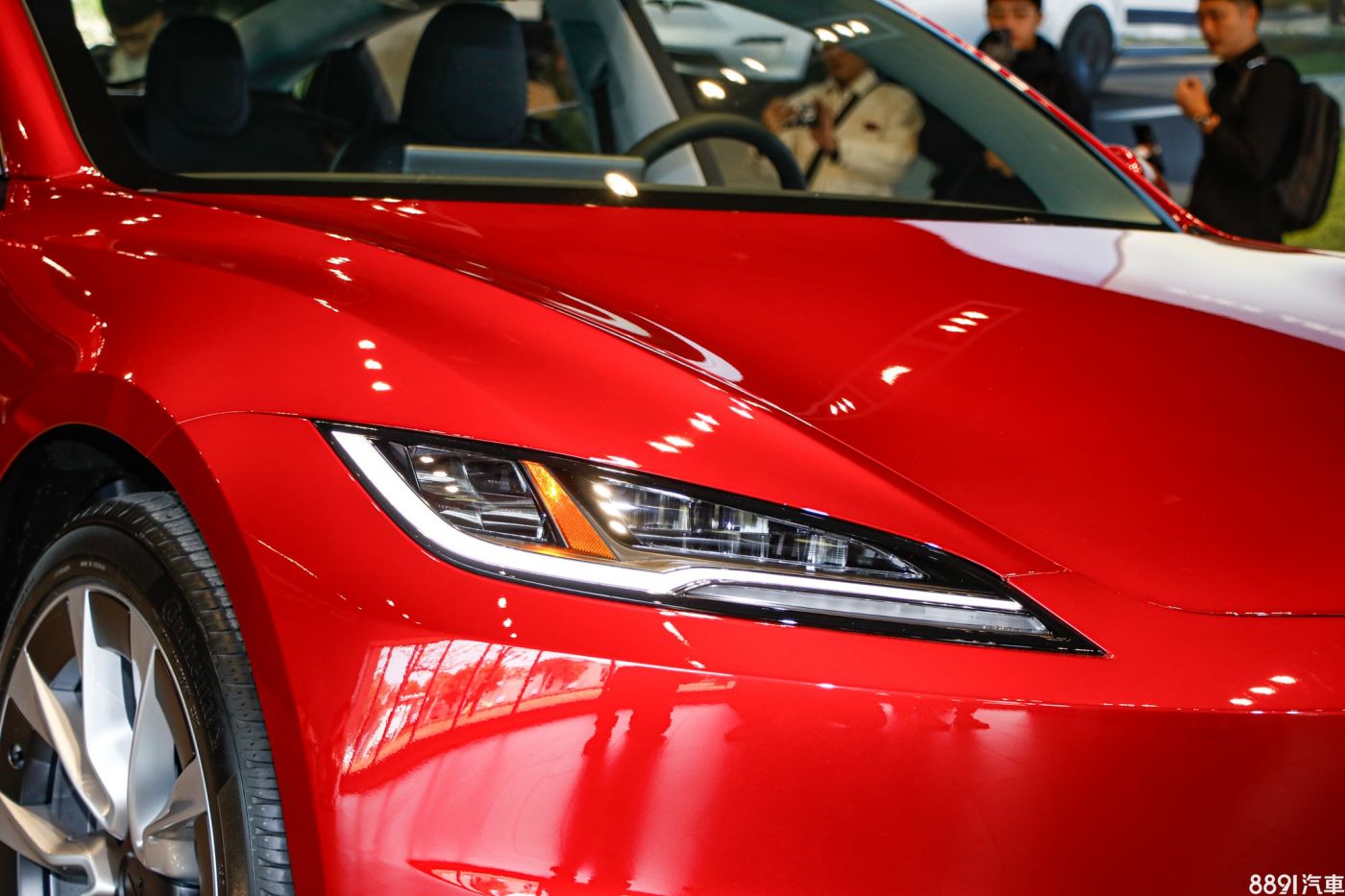 小改款Model 3尺碼與先前相去不遠,車頭最明顯的莫過於換上新款LED頭燈組,並透過頭燈位置下移、拉長的前蓋,營造更低趴蟄伏的視覺效果,前保桿造型修飾得較為簡約,兩側取消了霧燈的配置,整體變化不算大,但新鮮感是有的。