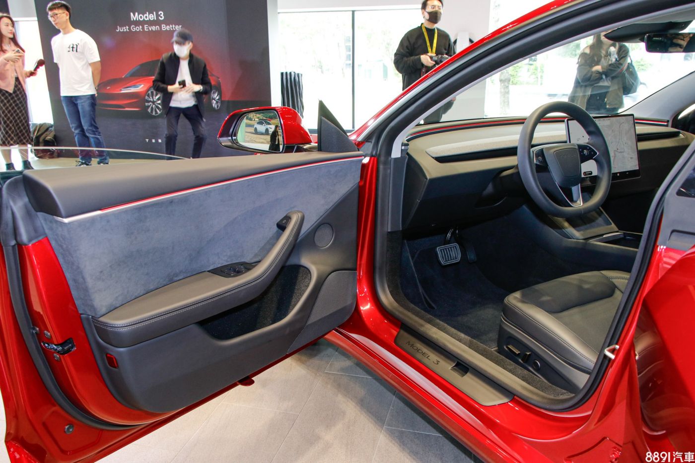 車室一眼望去除了新式樣方向盤上的觸控鍵和滾輪,幾乎可用「一片空曠」來形容。全車系標配256色氛圍燈、手機無線充電裝置、雙區恆溫空調、全景玻璃車頂、7具氣囊、盲點偵測、AutoPilot自動駕駛輔助系統等。