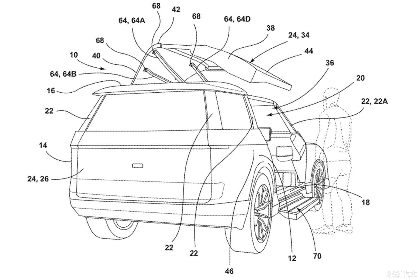 美國專利商標局近期曝光一組由福特提交的專利概念圖,圖中展示一款搭載單側歐翼門的全新休旅,車門開啟方式與特斯拉Model X頗為相似,同樣都是門板連同車頂一起向上掀開,而且車門開啟時下方門檻還會一併放下,成功為其創造出十分開闊、友善的進出空間。