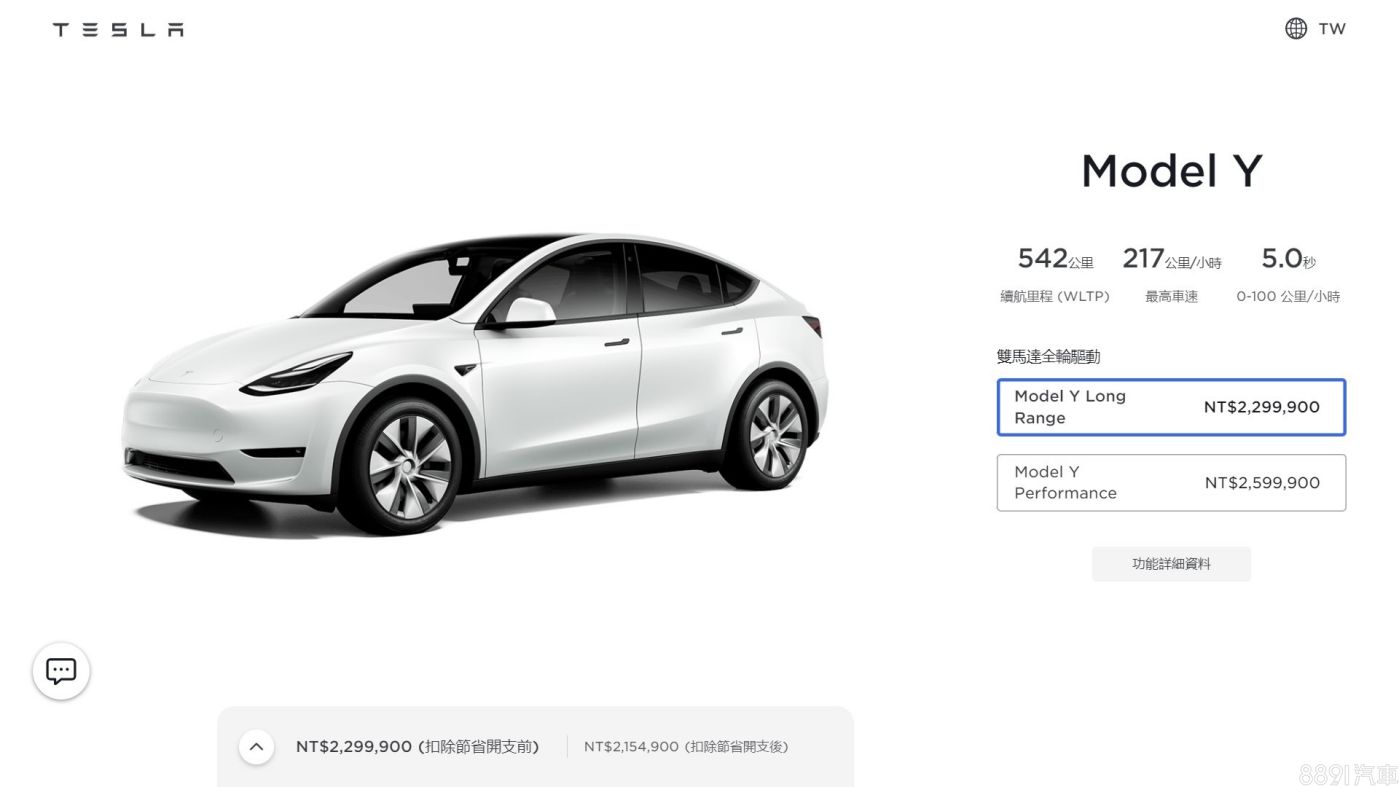 特斯拉今(23)日宣布,純電休旅Model Y正式登陸台灣,規劃Long Range與Performance兩種版本,售價依序為229.99萬與259.99萬,消費者即日起可自官網客製化下訂,同時選配FSD全自動輔助駕駛功能,首批新車由德國柏林生產,預告第四季限量交付。
