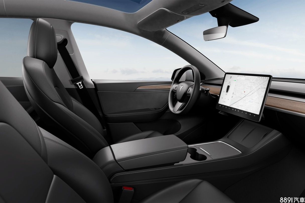 座艙沿用Model 3的簡潔配置,標配中央15吋觸控螢幕、手機無線充電、前排電調座椅、HEPA高效空氣過濾系統、全景玻璃車頂、電動尾門等,而後座也配備一鍵傾倒功能,行李廂容積最大可達2158L。