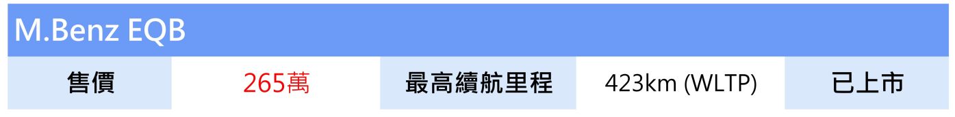 由於國內Model Y不開放選配第三排座椅,讓EQB成為300萬內七座純電豪華SUV的唯一選擇,剛在上個月以單一車型265萬的售價正式開賣,動力採前後雙馬達四驅配置,搭載66.5kWh電池組,最大續航力可達423km。