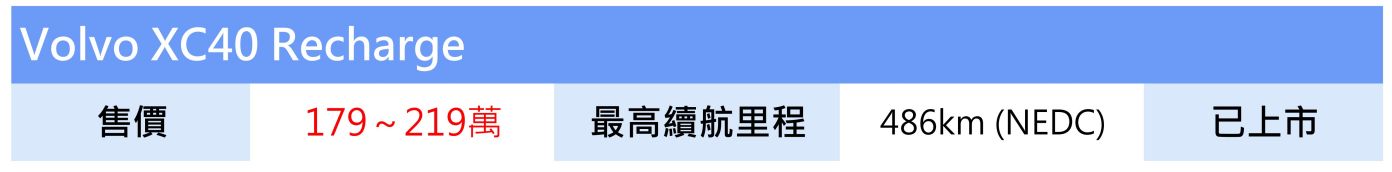 本周才剛上市小改款車型的XC40 Recharge,在既有的408hp雙馬達四驅車型外,另新增231hp單馬達前驅版本作為入門款,也讓車系入手門檻下放179萬起,最大續航力按NEDC測試標準,則分別為465km和486km。