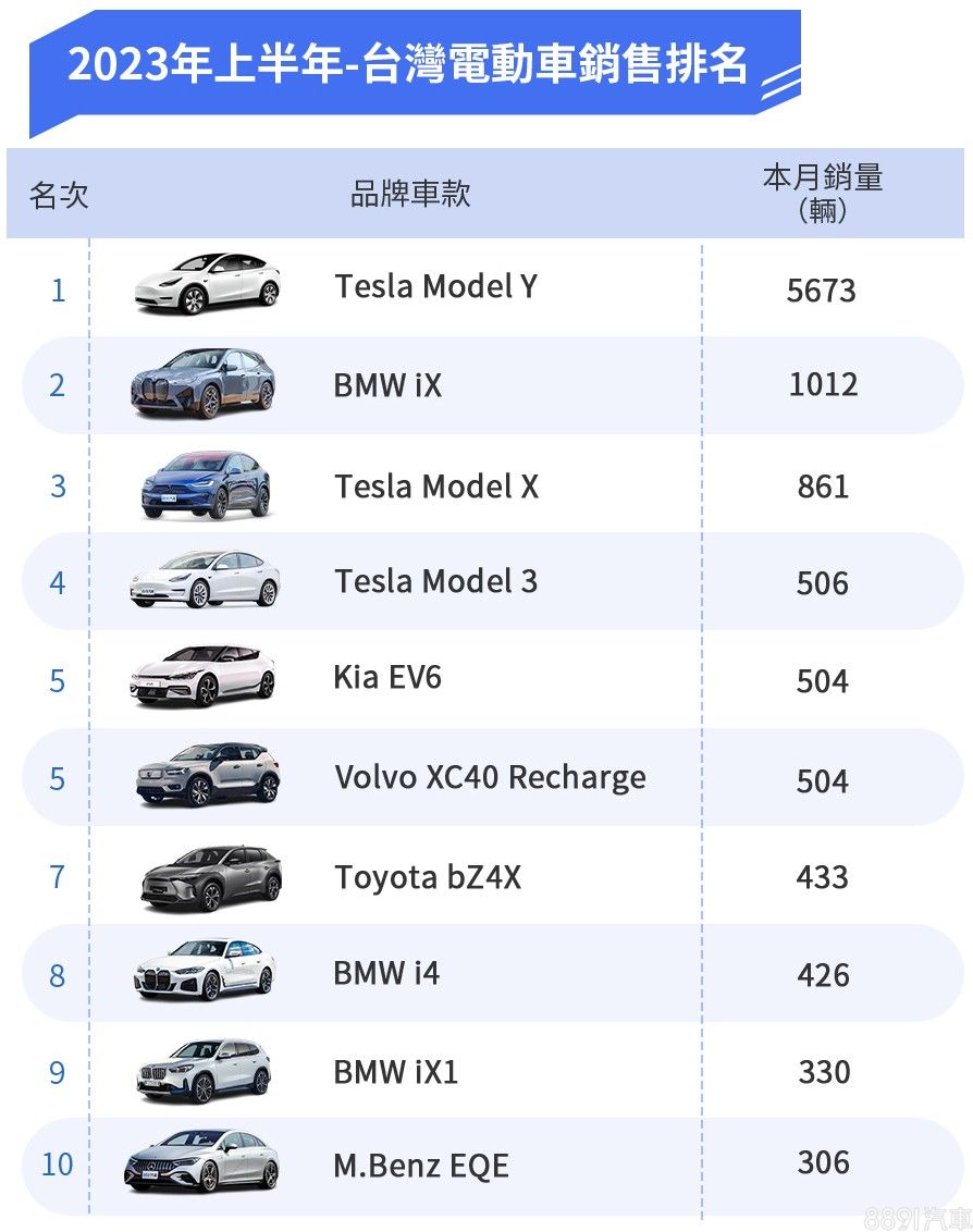 而上半年最賣的電動車沒意外的由Model Y拿下,掛牌數5673輛,海放其他車款,一車就貢獻總市場44%的銷量,而Model X也是「狠腳色」,光靠6月一口氣大量交車,年榜就衝上第3名,若將下來能維持火力,挑戰亞軍的BMW iX指日可待。
