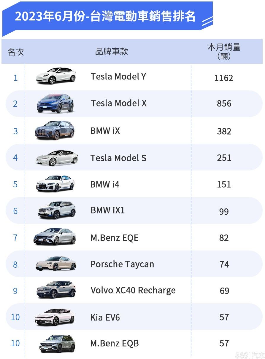 2023年6月台灣電動汽車掛牌數為3628輛,相比5月的2561輛,成長超過4成,同時也寫下今年最佳月銷紀錄,銷售主力Tesla再度扮演最大功臣,而且除了Model Y有發揮外,本月還加入Model X、Model S火力輸出,若加上Model 3也有交車26輛,全品牌共掛牌2296輛,等於電動車銷量有6成來自Tesla。