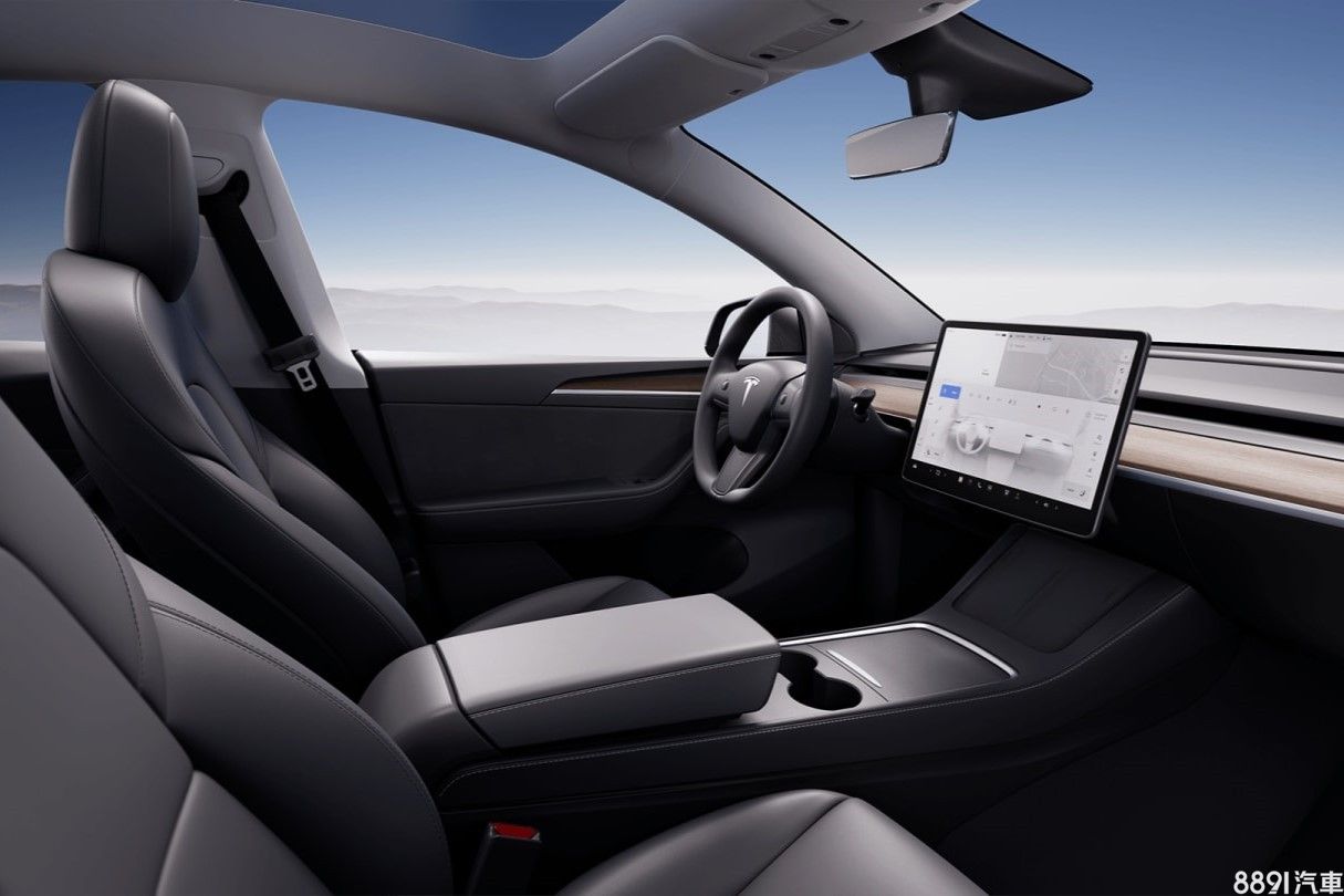 Model Y後驅版內裝配置與其他版本相當,搭載一具15吋中央觸控螢幕,整合所有駕駛資訊及娛樂功能,同樣搭配標誌性的全景玻璃車頂,原廠稱玻璃能有效阻隔紅外線和紫外線進入車內,並為座艙帶來明亮開闊的視野。
