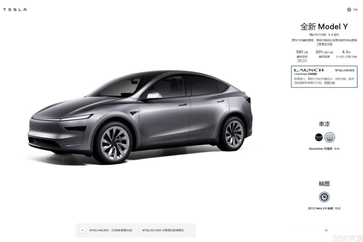 繼Model 3煥新版之後,特斯拉Model Y也迎來更新,沒想到外媒都還在追蹤無偽裝測試車首度曝光後,台灣官網就已經同步上架全新Model Y了,終於得以一探廬山真面目。國內首波將提供限量發行的「Launch」首發版、定價自244.99萬起,即日起開放下訂,預計交期5至6個月。