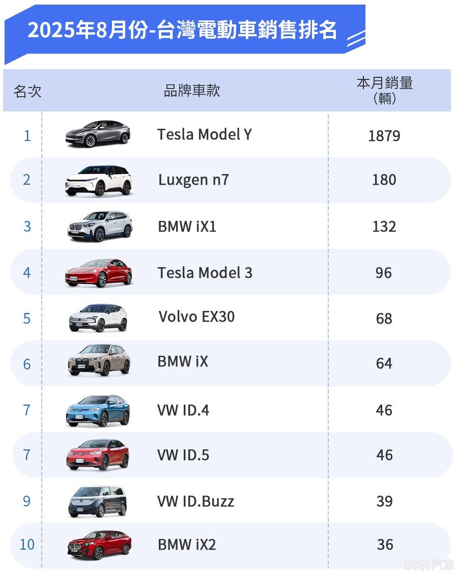 8月台灣車市又冷凍,較7月大跌17%,不過電動車倒是逆風向上,登錄台數2954輛、成長約15%,而主要的關鍵得歸功於Tesla大漲4成所致,全品牌掛牌1977輛,佔當月電動車銷售超過5成。