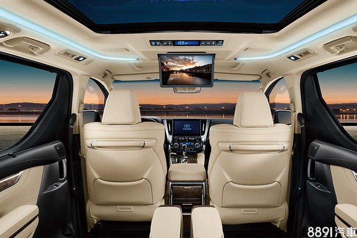 Alphard黃金特別版採7座設定,支援一、二排電調+腿托、可收納小桌、13.3吋後排娛樂影音系統等配置,並加諸Nappa真皮包覆,強調質感呈現。