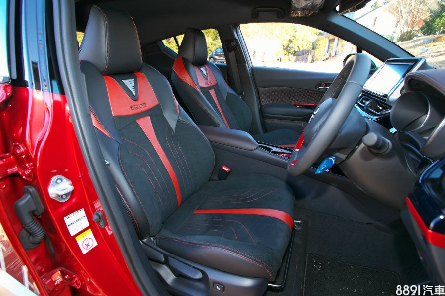 內裝採紅黑雙色基調重新舖陳,並以黑色鋼琴烤漆妝點中控台增添質感,座椅則是採用皮革與麂皮混搭材質,彰顯Sonic Emotion C-HR Concept內外如一的運動氣息,當然,上面Modellista的字樣絕對是其身份最好證明。