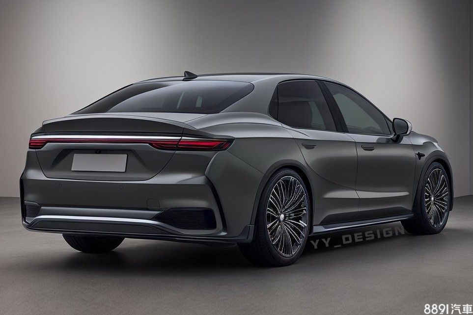 車尾造型以水平線條為主軸,搭配橫貫式尾燈,設計明顯參考了Crown Sedan的風格,視覺上甚至帶點奧迪A8的既視感,不過與官方局部預覽對比,尾燈造型不太相同,且車身鈑件造型也推測可能不會如此立體深邃。