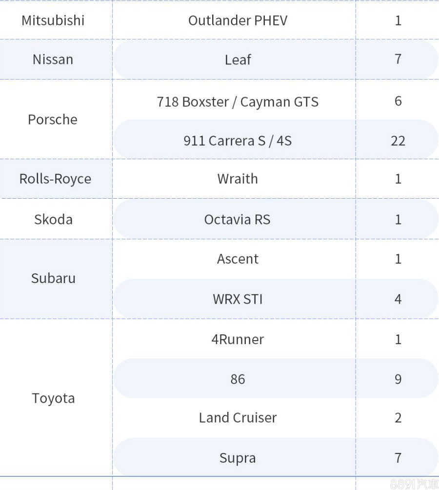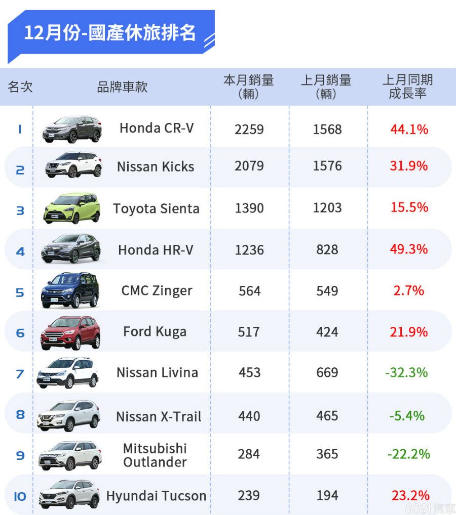 而Toyota Sienta依舊維持著相當穩定的銷售表現,本月份成長了15.5%,以1,390輛的成績位居第三名,Ford Kuga也在年末促銷的攻勢下突起,成長21.9%繳出了517輛的成績單,第10名的Hyundai Tucson表現也相當不錯,本月份有著23.2%的漲幅。