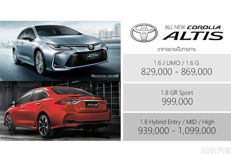 泰規新世代Corolla在外觀上比照歐規版本辦理,提供3種動力,分別是出力為125hp/15.9kgm的1.6升NA汽油引擎、可產生140hp/18kgm之最大輸出的1.8升NA汽油引擎,以及綜效馬力122hp的1.8升Hybrid系統。