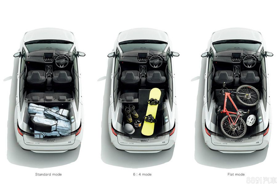 在內裝方面則維持與Corolla Sport相同的布局,中控台與座椅皆沒有太大的變動,行李箱容量部分在轎車款為429L、旅行車款為392~802L、掀背車型為352L,在2WD車型當中的行李箱底板還有兩段式的設計,提供更好的空間利用。