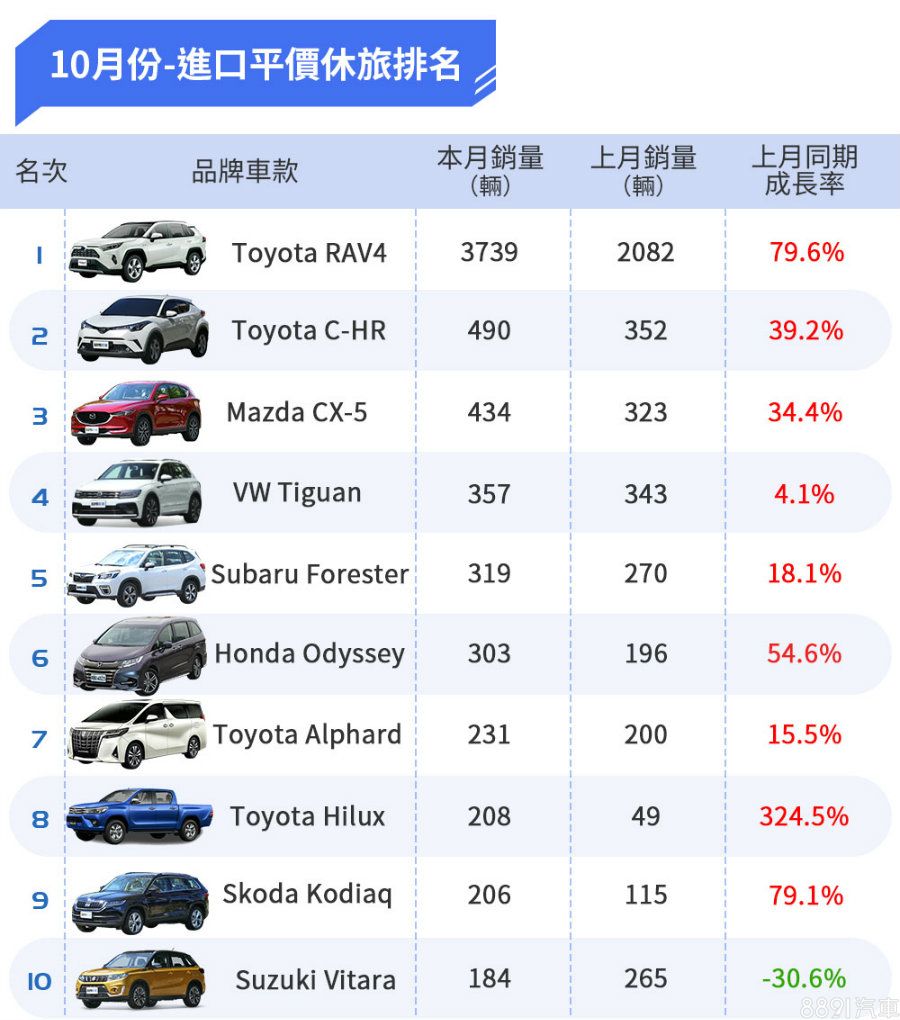 9月份上架的新年式馬自達CX-5,於首個完整銷售月份亦繳出亮眼成績,來到第三名,雖車系縮編,入手價來到百萬起跳,但2.0主力車型無料升級多項配備,加上品牌既有的質感形象,相信還是可以持續受到消費者青睞。