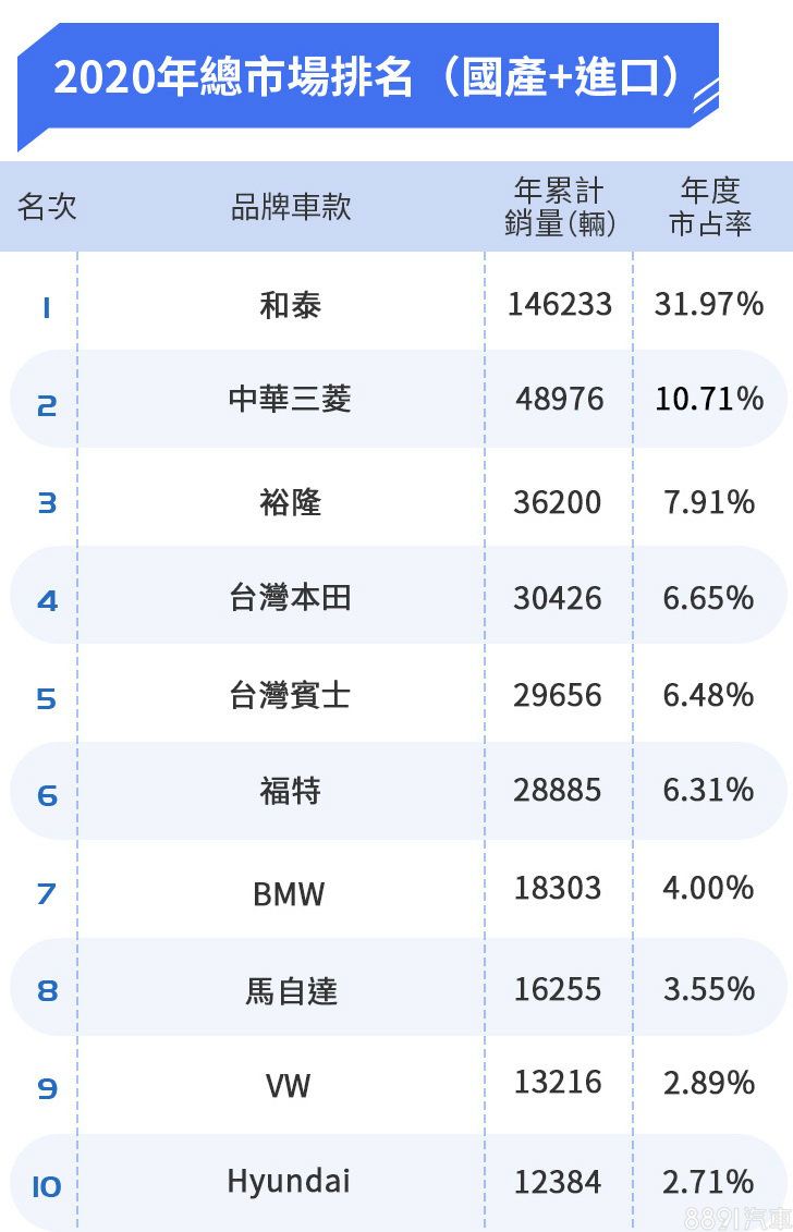 2020全年累積銷售達到457435輛,雖說有疫情因素,導致許多車款延期登台,但其實2020年僅有1、5、7月份累積銷量較去年同期為負成長,因此突破2019全年成績,且有著約4%之升幅,算是不意外。