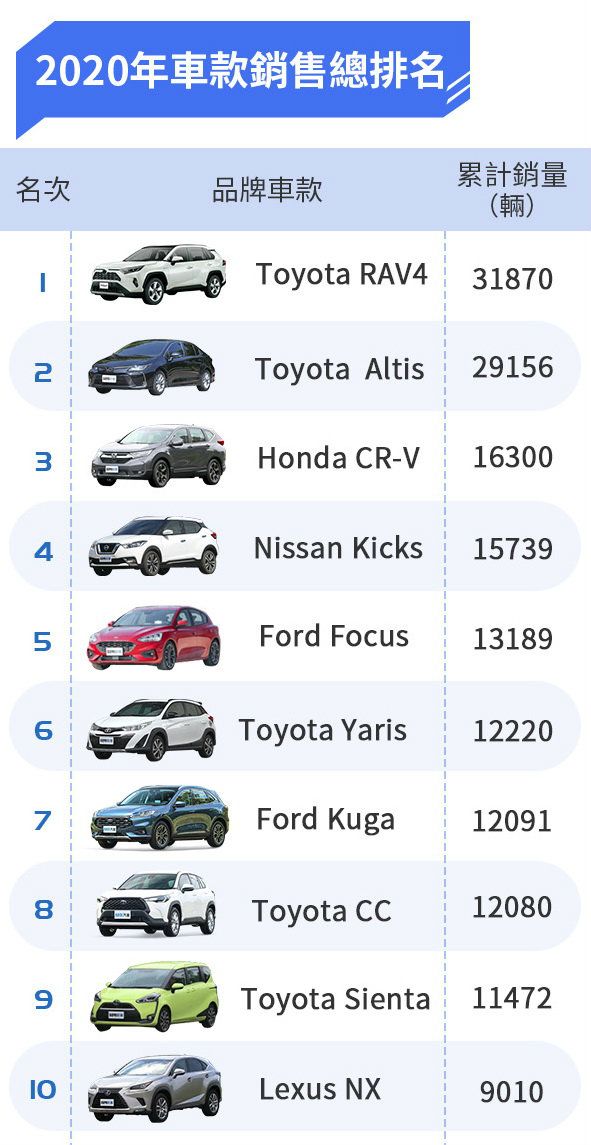 不過RAV4雖坐上神車寶座,卻也不是從此「無憂」,同門Corolla Cross甫於2020年10月中上市,一個多月的掛牌數就打趴一狗票車款「近一年的努力」,擠進第八位,2021年若持續此番強勢表現,真的不容小覷。