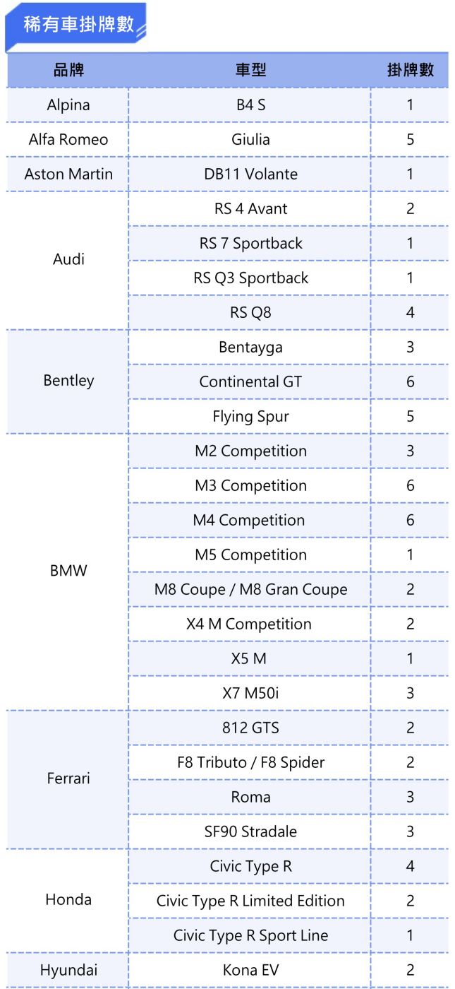 雖然新車陸續出現缺車潮,但似乎不影響超跑的熱鬧程度,售價2385萬起跳的千匹油電超跑SF90 Stradale一口氣掛牌3輛;而2017年在台發表、全球限量25台的稀有客製化超跑McLaren MSO HS也現身名單,看來是車主換人了!