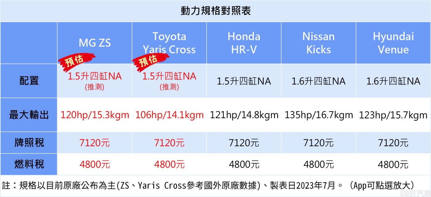 動力方面,MG ZS、Toyota Yaris Cross我們推測首波都會提供1.5升自然進氣汽油引擎,此設定剛好也和對手不相上下。順帶一提,ZS之後有望推出純電選項,只是可能不會太快。