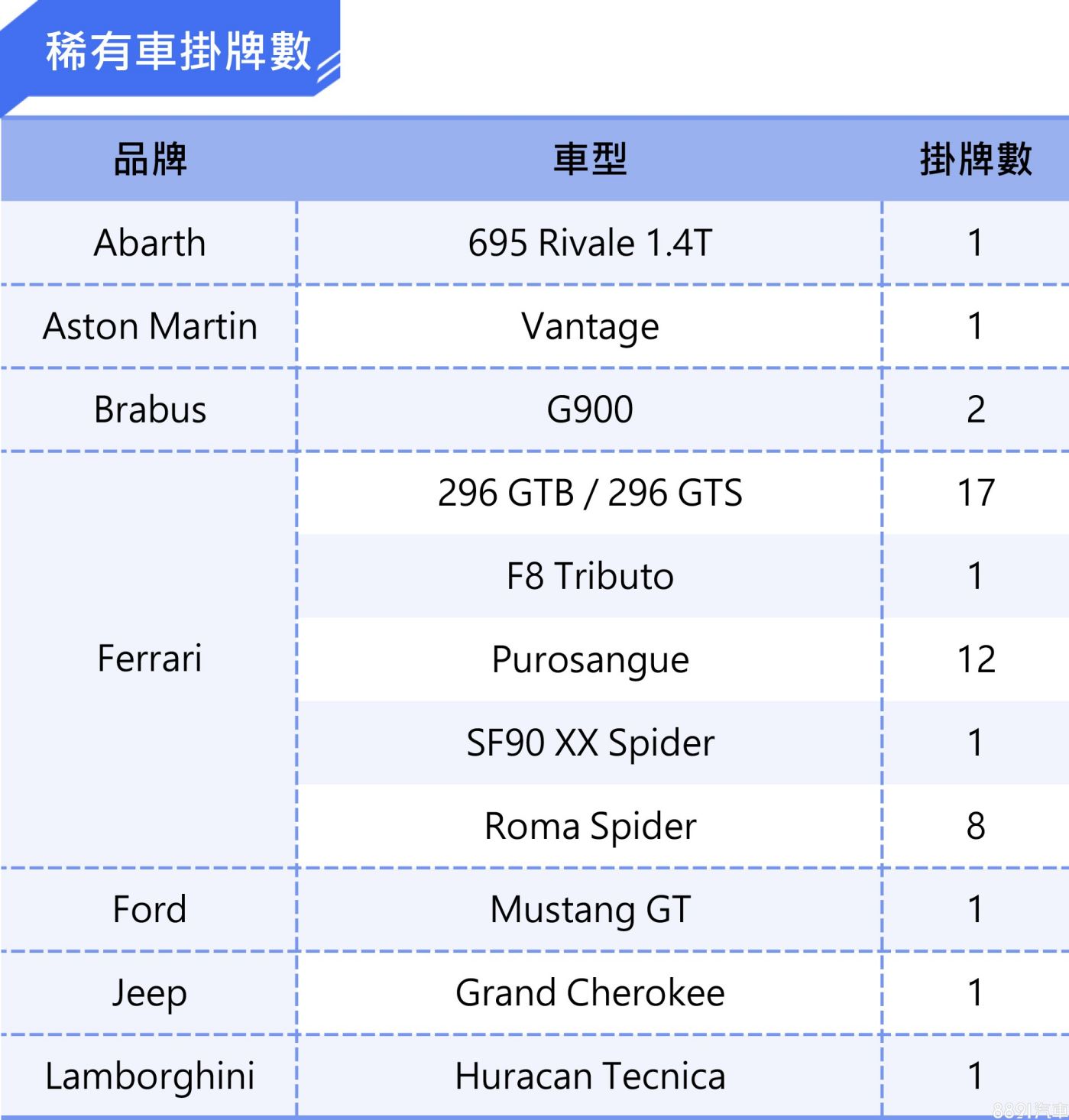 695 Rivale是Abarth與義大利頂級豪華遊艇製造商Riva跨界合作的限量版結晶,全球僅生產350部(Coupe與Cabriolet各175部),其設計靈感完全源自Riva遊艇,完美復刻了豪華遊艇的外觀、座艙氛圍。雖然心臟同樣是那具1.4升渦輪增壓引擎,但開著它,彷彿不是在柏油路上奔馳,而是在蔚藍海岸上巡航,本月僅此一輛掛牌,稀有度不言而喻。