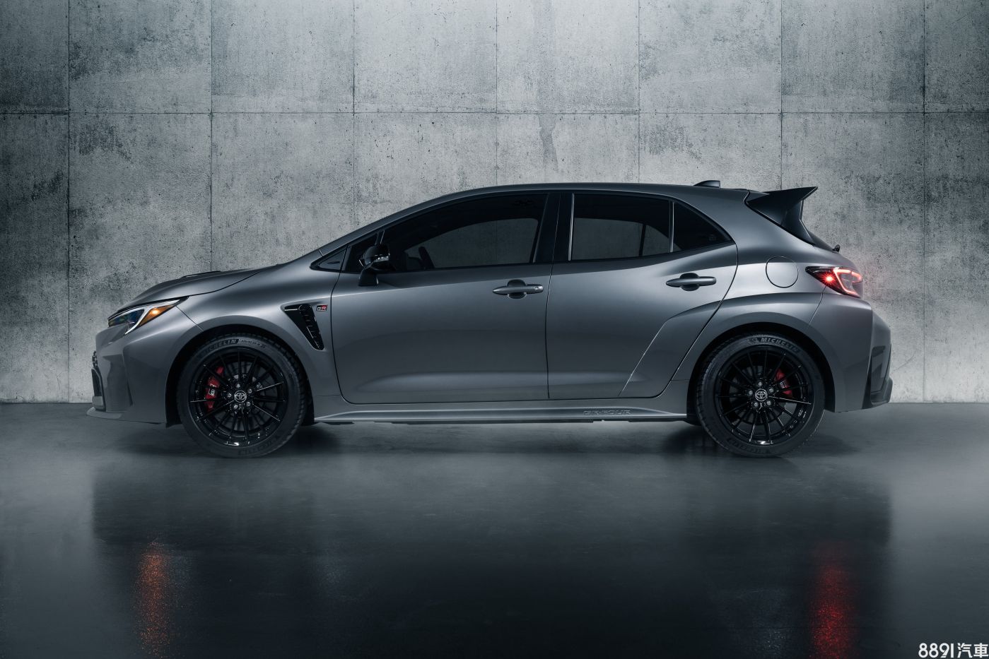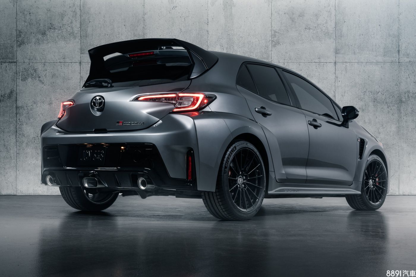 車側望去,除了視覺上更為低趴外,於前、後輪距各自加寬60與85mm,搭配微爆龜的輪拱、前葉子板的散熱鰓孔等設計,更能充分感受GR Corolla的肅殺氣息。