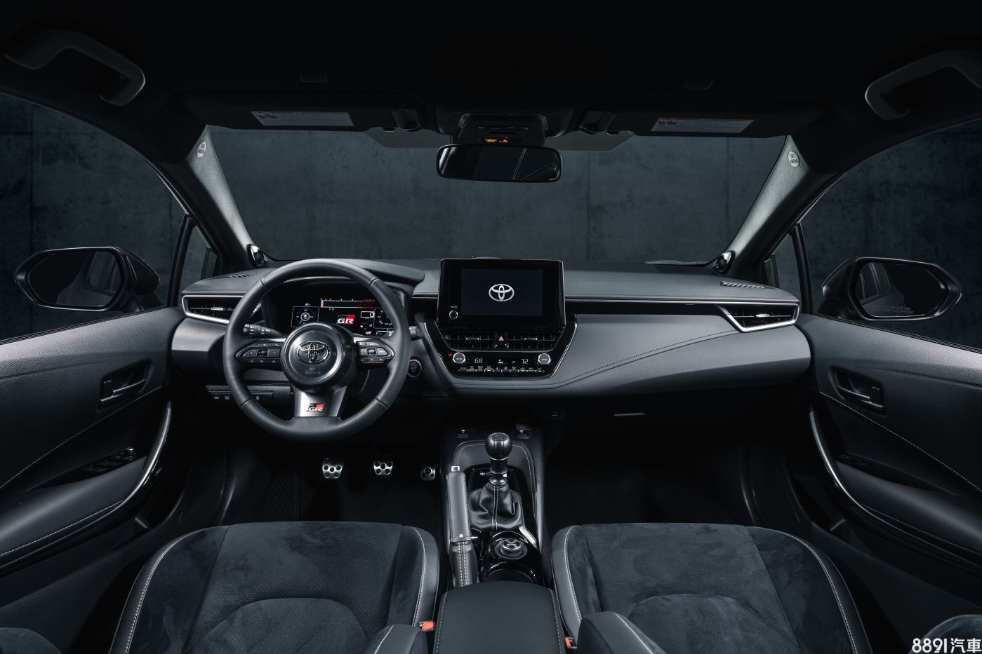 車室內大致延續Corolla Sport的格局,主要是三輻式方向盤、跑車式座椅、儀錶板都換上GR專屬規格,新開發的全數位儀錶是參考自賽車規格,轉速錶採用長條顯示,兩側也能提供諸如G值、渦輪增壓值等駕駛資訊。