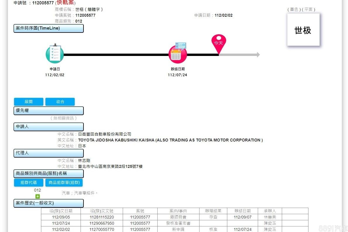 自經濟部智慧財產局曝光的資料可見,日商豐田自動股份有限公司申請了「世极」(簡體字)的商標名稱,商標圖樣很簡單,就是平面化且字體黑色的「世极」,推測就是為了Century SUV導入台灣提前布局,不過屆時若新車在台上市,和泰應該會以英文名或是「世紀」來與消費者做溝通。