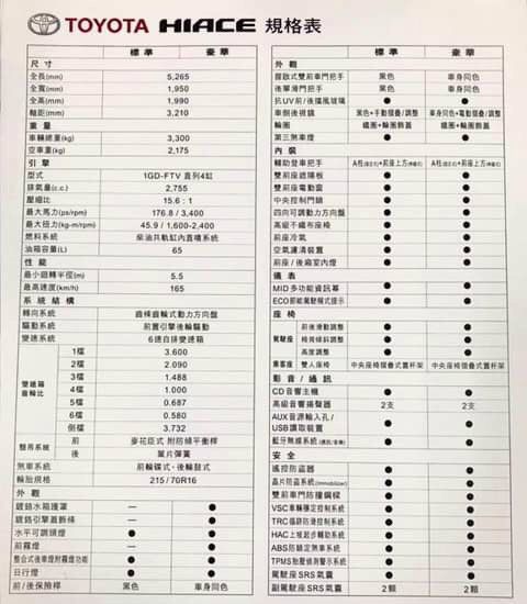 相較於海外市場,本代採進口導入的新Hiace,在選擇上較為簡要,僅提供3210mm的標準軸距車型,動力亦統一搭載2.8升四缸柴油與六速自排配置,供應著176.8hp/45.9kgm的最大輸出,油箱容量則為65L。