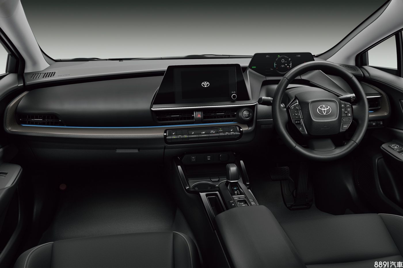內裝方面,入門款Prius PHEV維持相同的格局,不過配備方面少了方向盤加熱、感應式雨刷、前座隔音玻璃、Nanoe X清淨系統、360度環景、手機無線充電等實用機能,就連皮質座椅也改為織布,並且少了駕駛座電調、記憶等功能。