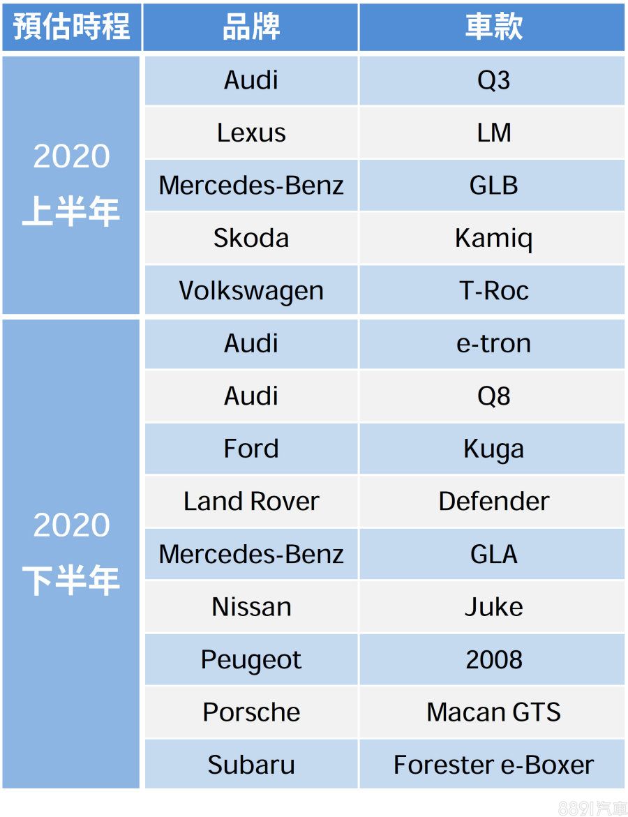 告別2019年,台灣市場也預計在2020年間帶來多款休旅新選擇!包含「豪華版Alphard」的LM、新一代Q3、賓士全新車系GLB和等候已久的T-Roc,都預期能在上半年間登場。