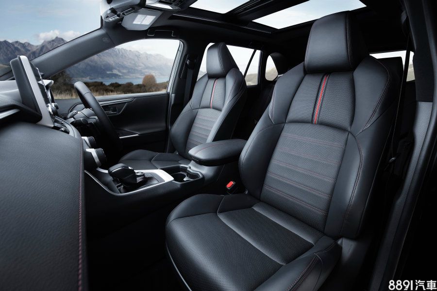 內裝連同座椅均採用黑底紅縫線的對比鋪陳,全車系標配9吋多媒體觸控螢幕及前後排皮質加熱座椅,頂規車型雙前座另增加通風功能。然而不同於美規的RAV4 Prime,日規RAV4 PHV並未配備方向盤換檔撥片。