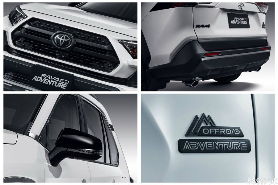 延續Adventure車型較為粗獷的設定,新增的RAV4躍野冒險版也在外觀動刀,並將原先的銀色前後保桿下護板改為深灰塗裝,若搭配雪貂白車色,後視鏡蓋也會一併改為黑色,並在車尾貼上專屬OFF ROAD徽飾,視覺效果加分不少。除了雪貂白外,車色尚有雲河灰與尊爵黑可供選擇。